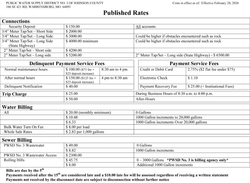 Water availability minimum charge – $20.00