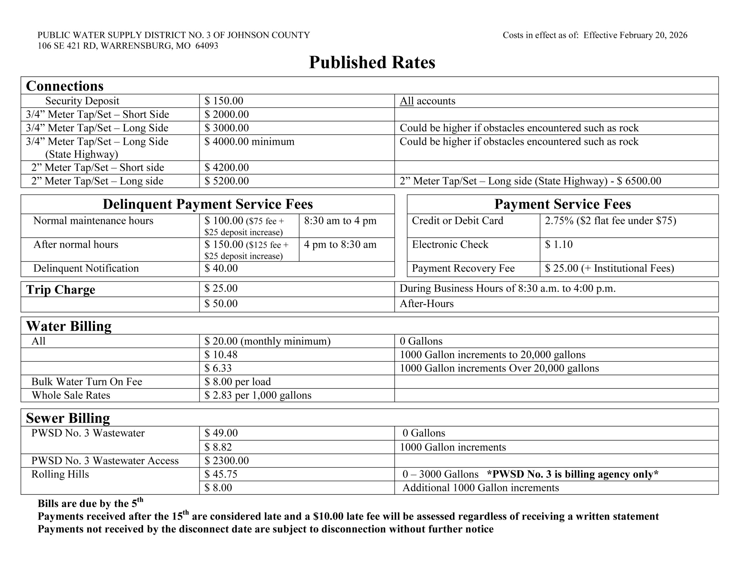 Usage charge for each 1,000 gallons – $10.48